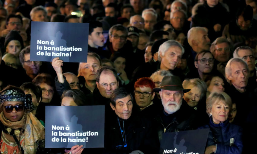 • La protesta tuvo lugar el mismo día que aparecieron unas 96 tumbas de un cementerio judío en Estrasburgo marcadas con esvásticas nazis.