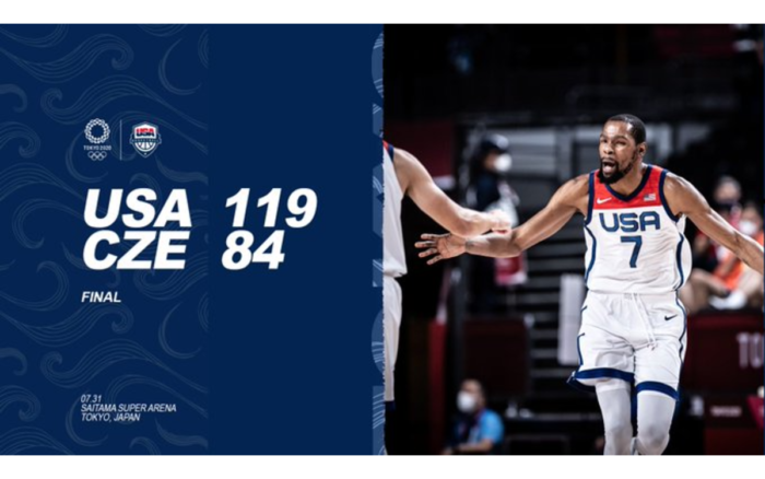 Cuando parecía que se avecinaba una noche complicada para el Dream Team, Jayson Tatum y Kevin Durant aparecieron en modo NBA para comandar la paliza de Estados Unidos 119-84 a República Checa en la Saitama Super Arena, sede del torneo de baloncesto de los Juegos Olímpicos de Tokio 2020.