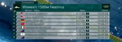 Ledecky dominó de punta a punta la prueba, que hace su debut en el programa de natación olímpico para las mujeres, con tiempo de 15:37.34 minutos; el segundo lugar fue para la también estadounidense Erica Sullivan (15:41.41). Y el tercer lugar para la alemana Sarah Kohler (15:42.91).