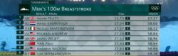 La medalla de plata fue para el holandés Arno Kamminga con 58.00 segundos y el bronce correspondió al italiano Nicolo Martinenghi con 58.33.