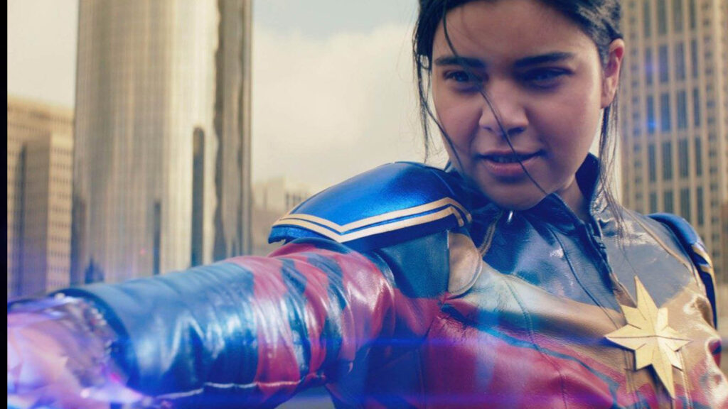 Ms. Marvel sigue la historia de Kamala Khan, una adolescente de Jerey City que es fan de los Vengadores. Un día asiste a una convención de héroes sin el permiso de sus padres y lo que comienza como un concurso de cosplay, termina con un giro inesperado ¿se está convirtiendo Kamala en una superheroina de verdad? El personaje hizo su primera aparición en los cómics en 2013 y asume su rol de Ms. Marvel dado su fanatismo por Carol Danvers (la capitana Marvel). Los poderes de Khan son los de alterar su cuerpo de forma polimórfica, pudiendo cambiar el tamaño de sus puños y estirar cada una de las partes de su cuerpo. La serie se emite actualmente en Disney +.