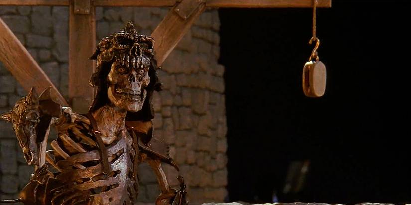 Mesa revela que muchos de los esqueletos en primer plano fueron filmados usando stop-motion, pero el control de movimiento y “plataformas mecánicas“Se utilizaban a menudo para los esqueletos del fondo. El supervisor de efectos visuales coincide con la evaluación del coanfitrión Niko Puerginger de que muchos de los esqueletos del fondo eran esencialmente…pequeños robots” que fueron diseñados para mover los brazos, blandir una espada, ajustar una lápida y otros movimientos. Consulta un comentario de Mesa a continuación sobre cuánto tiempo pasan algunos Ejército de las tinieblas Fotos tomadas: