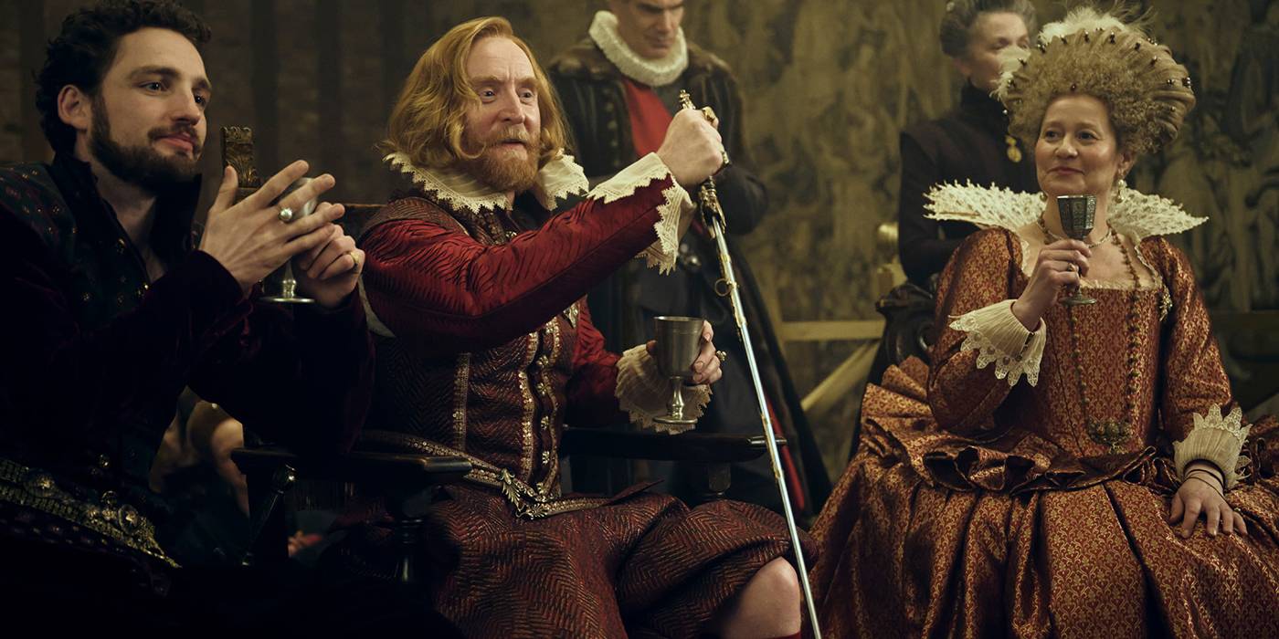 Tony Curran: Todo lo anterior. Es un gran triunvirato lo que has dicho allí. Sí, el guión, el sentido del humor, el dramatismo, el significado histórico, desenterrando a este monarca poco conocido, los 23 años de reinado del rey James. Su época jacobea, sus relaciones con los Villiers, Mary y George. De hecho, están todos enterrados en la Abadía de Westminster. Me parece bastante interesante y convincente el hecho de que fueran de una aristocracia muy baja, por así decirlo, los Villiers. Y el hecho de que Mary Villiers fuera lo suficientemente astuta, lo suficientemente sabia e intransigente como para usar a su hijo de una manera tan significativa que vio la oportunidad de mejorar ella misma y su familia, y ascender en la corte del Rey James al colocarlo en mi corte y darse cuenta: “¿Mordería?” Y vaya, creo que mordí. Mordí bastante fuerte. [Chuckles]