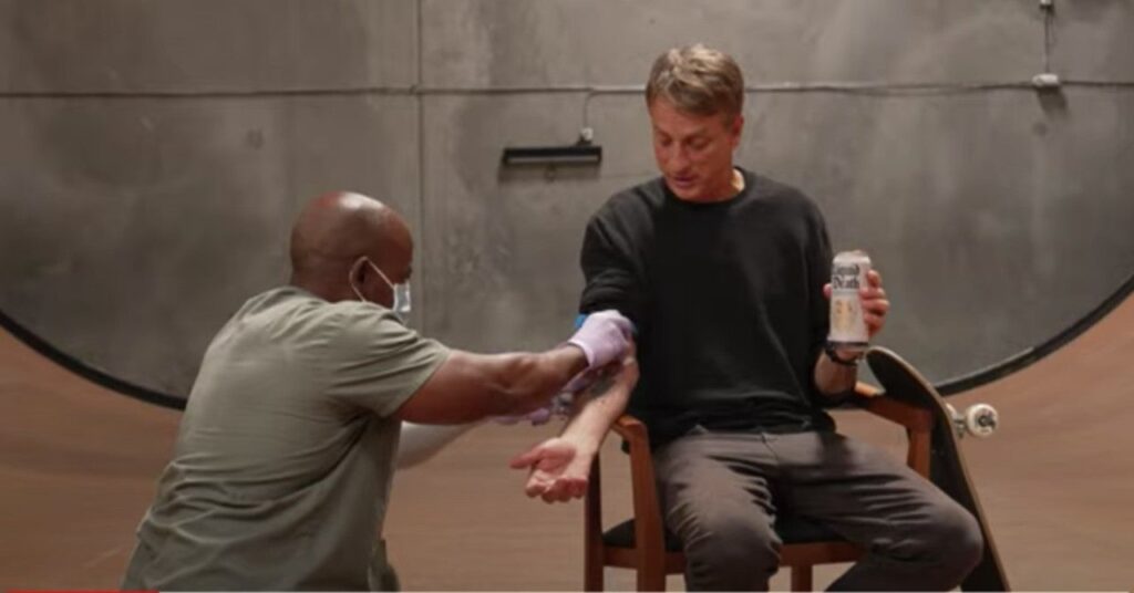 La leyenda del skateboarding Tony Hawk está vendiendo monopatines personalizados que están infundidos con su sangre por $ 500 cada uno. Las patinetas de sangre Tony Hawk son una promoción creada por Hawk y la marca de agua enlatada Liquid Death; el proceso mezcla la sangre de Tony Hawk con la pintura utilizada para detallar las patinetas, para crear piezas de arte sangrientas únicas en su tipo, en sentido figurado y literalmente. El arte presenta la mascota “It’s the Thirst Executioner” de Liquid Death, sosteniendo el cráneo de un halcón (el pájaro) como una oda al ícono del skate. Solo se fabricarán 100 tablas de sangre Tony Hawk (¡el hombre solo tiene tanta sangre para dar!), Y solo se venderán por un tiempo limitado.