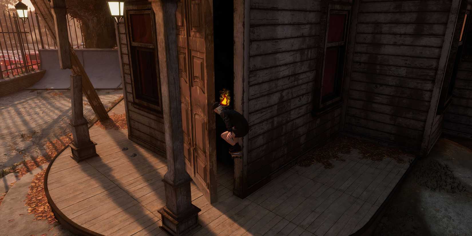 Salta a través de la puerta de entrada de la casa embrujada cuando veas los ojos brillantes |