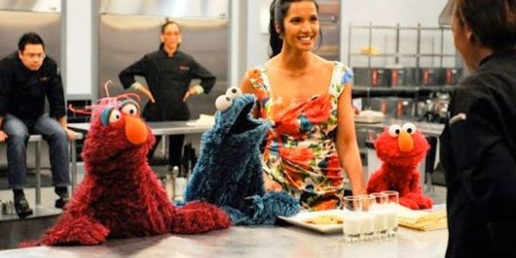 Lo que realmente lleva este desafío al siguiente nivel es la sana interacción de Elmo, Cookie Monster y Telly con Padma y los chefs. Una cosa es presentar una querida franquicia infantil, pero otra es cocinar para los propios personajes.
