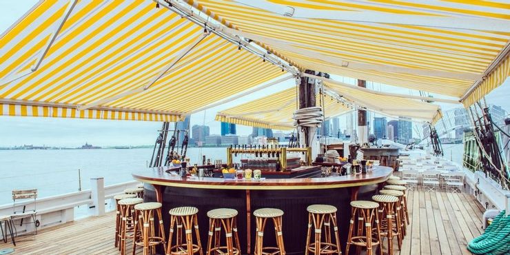 Un bar de ostras de temporada en Nueva York que se encuentra en la cubierta de una histórica goleta de pesca de bacalao. ¿Puede una experiencia gastronómica ser más moderna que eso? Aunque el restaurante de Kerry Heffernan solo está abierto durante los meses más cálidos del año, definitivamente vale la pena la excursión solo por las vistas.