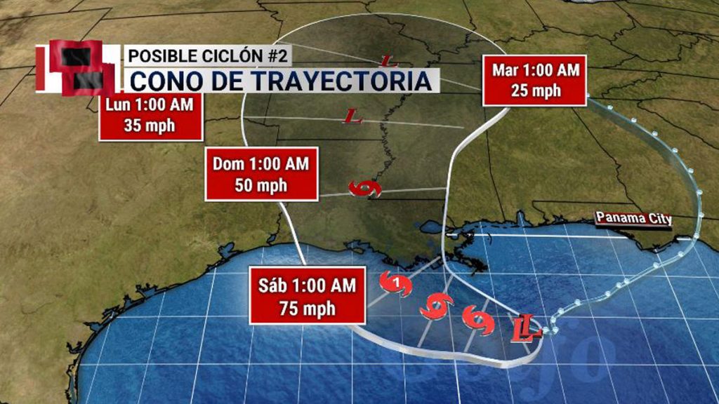 De acuerdo con el último boletín de NHC de la 1p.m. CT, la tormenta se encuentra a 185 millas al sureste de la ciudad Morgan, en Luisiana y se mueve a 5 millas por hora con vientos sostenidos de 40 mph.