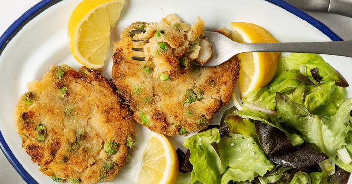 Estas tortitas de bacalao y guisantes son una forma sencillísima de tomar pescado e incluso de aprovechar restos. De inspiración anglosajona -en los conocidos fishcakes-, tomamos la buena idea de usar patata cocida para amalgamar tortitas con pescado desmenuzado y verduritas variadas, amén de condimentos a nuestro gusto, componiendo un plato que podemos hacer tan económico o lujoso como queramos y además es muy apto para personas a las que el pescado digamos que les cuesta. Ah, y son perfectas para aprovechar restos de pescado y verduras (que no está la cosa para tirar comida).