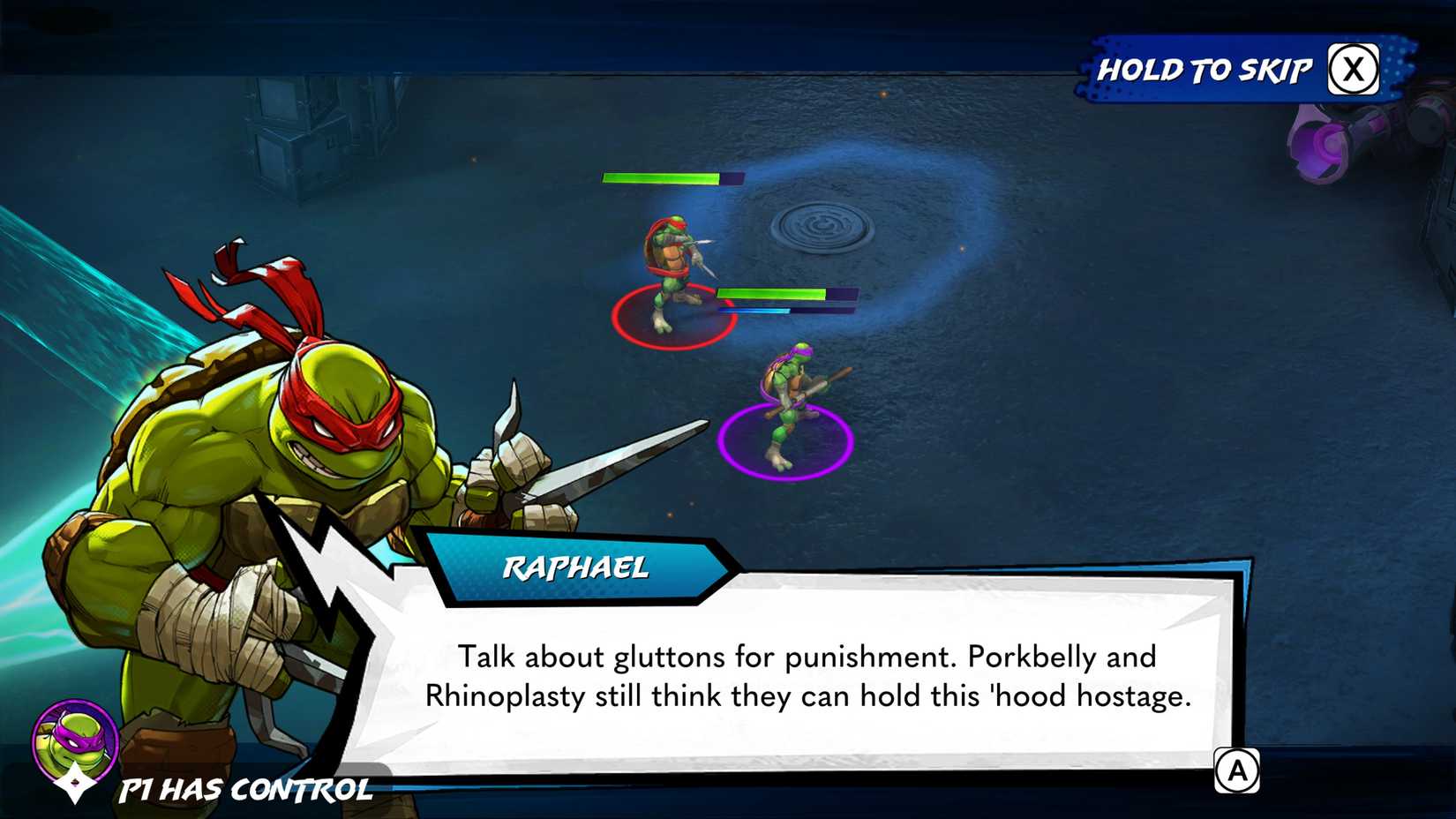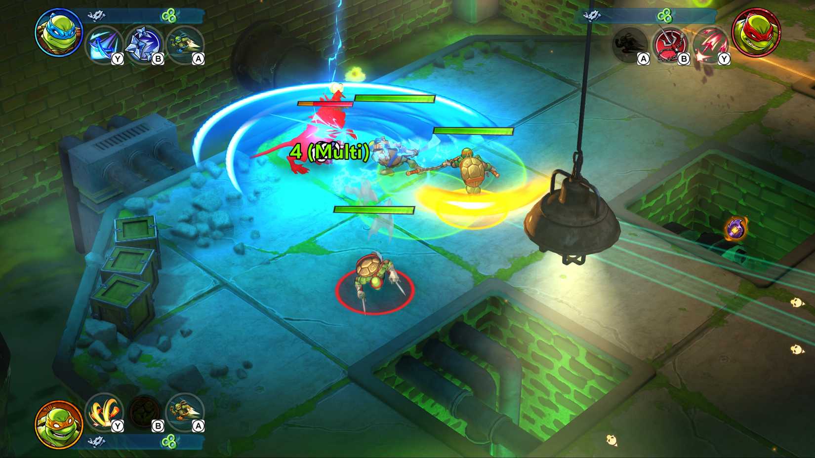 Al principio, sin embargo, el juego es considerablemente suave, con salas llenas de carne de cañón de dibujos animados que desaparecen rápidamente. En cuanto a las muchas bromas y frases cursis, toda la pandilla está aquí y suena genial: Rafael es gruñón, Miguel Ángel es surfero, Leonardo es el rock noble y Donatello hace máquinas. Las Tortugas lucen algunas habilidades únicas que acompañan a su armamento estándar, y intercambiar personajes al comienzo de cada carrera durante una sesión maratónica para un jugador hace que el bucle estándar se sienta un poco más dinámico e interesante.