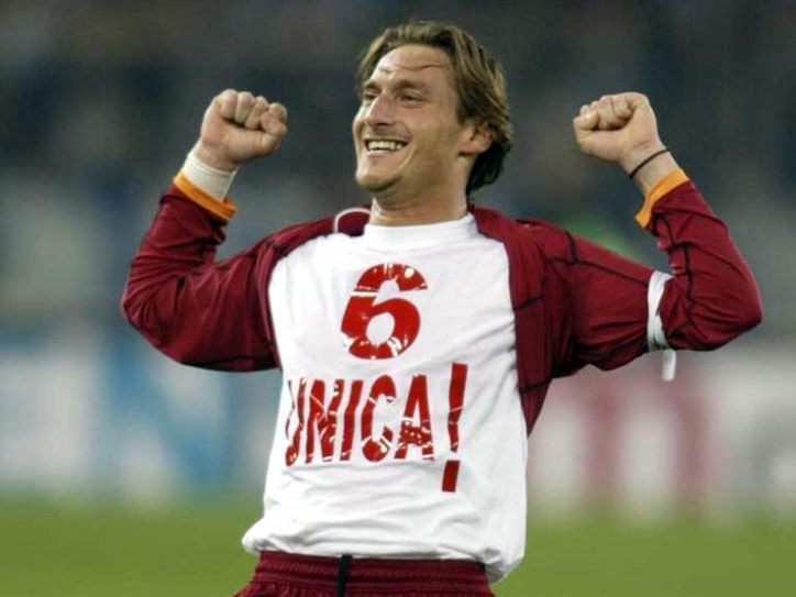 Totti, rara avis de un solo club, fue el último rey que coronaron las calles de Roma. Concretamente las de San Giovanni, el barrio del centro donde creció con su familia. Ilary Blasi —su padre la llamó así por La conquista del Oeste— era una conocida show girl de la que el jugador se enamoró desde el otro lado de la pantalla. Totti jugó en el primer equipo de la Roma 24 años: 8.828 días, 291 meses. Cuando se retiró tenía 41 años y la mitad de los jugadores que esa temporada se habían enfrentado a él ni siquiera habían nacido cuando él debutó. Ella, en cambio, afianzó su carrera cuando le conoció, poco después de que Il Capitano se levantase la elástica en un Roma-Lazio de 2002 —el mismo año en que un ciclón llamado Berlusconi desplegaba otro tipo de relato amoroso y sexual ya como primer ministro— con la famosa declaración de amor en la camiseta blanca: “6 unica” (eres única). La misma que ella mostró el día que su marido decidió jubilarse y, quién sabe, sin comenzar la crisis que alcanza a tantos mortales cuando superan las cuatro décadas.