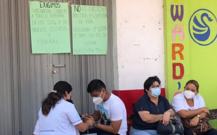 El personal reclamó a las autoridades federales y de Oaxaca la dotación de 800 dosis, que aseguran es para el personal de primera línea de atención que se ubican en los centros y casas de salud y también personal administrativo.