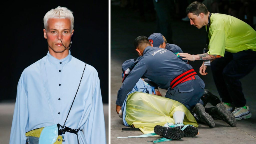 “Acaba de morir una persona y estás aquí como si la vida no valiese nada”, gritó un artista vestido de dorado desde la pasarela durante el desfile de clausura en la noche del sábado de la 47 edición de la Semana de la Moda de Sao Paulo, el mayor evento del sector de la moda en Brasil.
