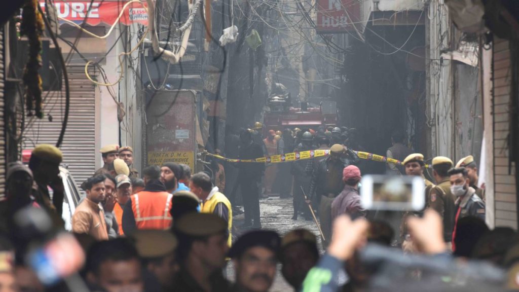 Un vecino de la zona, Mohammed Naushad, dijo que le despertaron los gritos de la gente en torno a las 4:30 a.m. Salió a la calle y vio humo y llamas saliendo de un edificio cerca de Sadar Bazaar, el mercado al por mayor más grande de la ciudad para productos domésticos. Dentro encontró la cuarta planta envuelta en llamas. Una planta más abajo vio “20 o 25 personas en el suelo”.