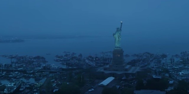 Hay un disparo que muestra a Staten Island rodeado de niebla y oscuridad. Si miras de cerca, hay carpas blancas estacionadas fuera de la Estatua de la Libertad. También hay hordas de barcos estacionados alrededor de la estatua, lo que parece que hay un montón de personas que se dirigen a la isla.