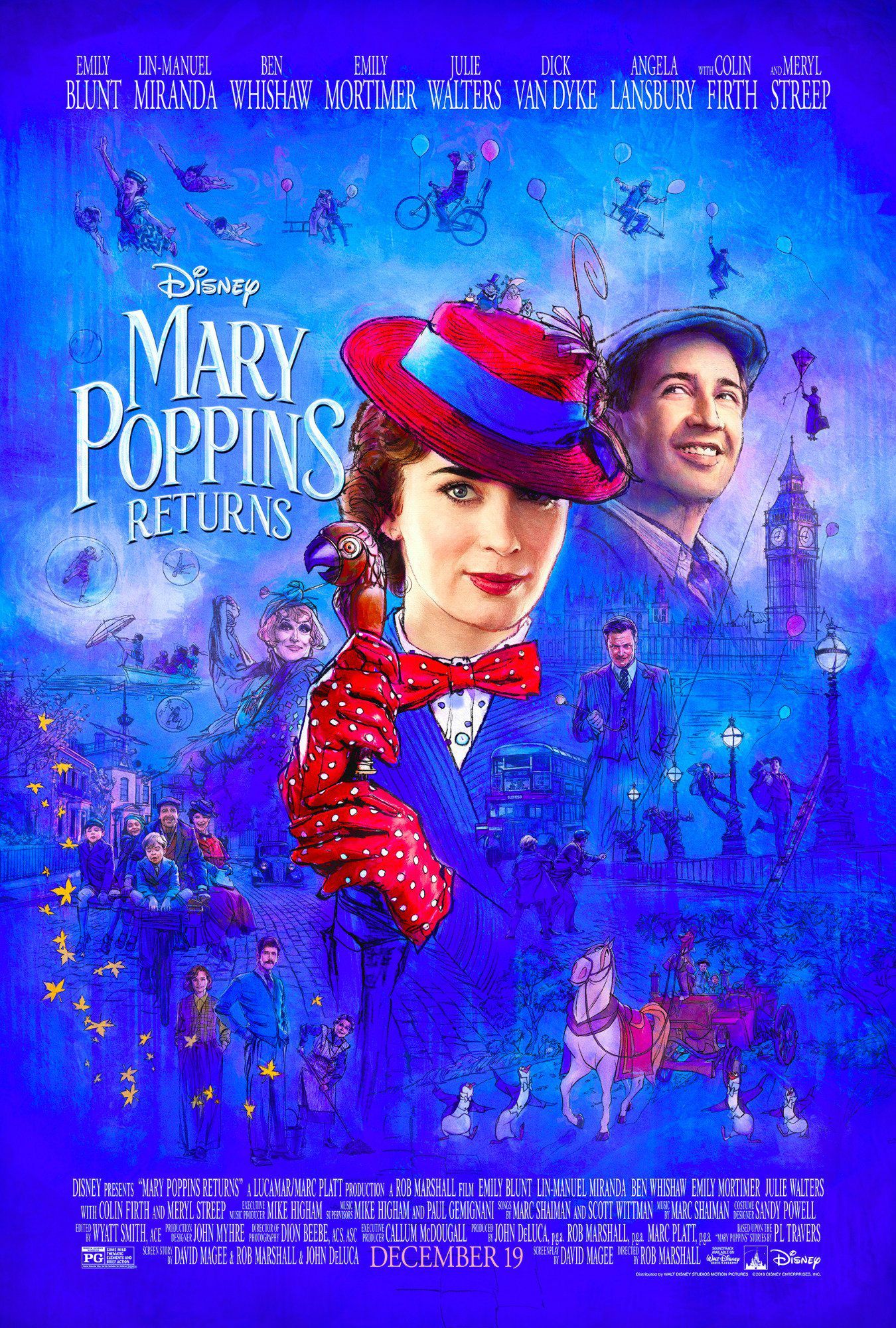 Escrito por David Magee (La vida de Pi) y dirigida por Rob Marshall (chicago, En el bosque), El regreso de Mary Poppins tiene lugar unos veinticuatro años después de los acontecimientos de la película original. En ese tiempo, los hijos de la familia Banks, Jane y Michael (ahora interpretados por Emily Mortimer y Ben Whishaw) no solo crecieron, sino que también siguieron los pasos de sus padres al convertirse en activista social y banquero, respectivamente. Sin embargo, cuando Michael y sus propios hijos se ven afectados por una terrible tragedia, depende de Mary Poppins (Blunt) regresar a Cherry Tree Lane y ayudarlos a volver a encarrilar sus vidas.