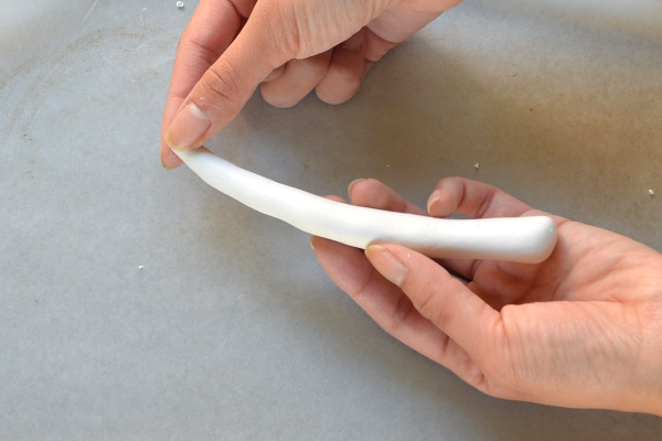 Puede ser difícil trabajar con él al principio, especialmente si la arcilla ha estado en una caja durante mucho tiempo. El truco consiste en seguir enrollando la arcilla repetidamente para calentarla y moldearla.