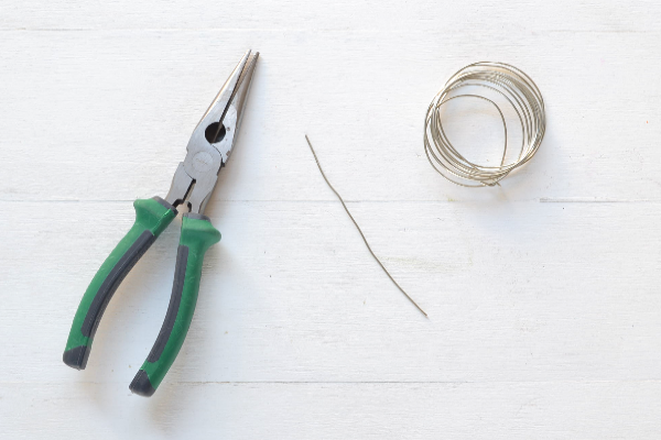 Con la parte cortante de los alicates, corte un hilo de alambre de 4 pulgadas. La parte de corte de los alicates se encuentra justo debajo del extremo de la punta de la aguja. Este trozo de alambre ayudará a que los tentáculos se mantengan erguidos en la tierra y la tierra.