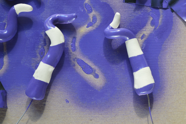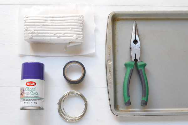 El primer paso para cualquier proyecto de bricolaje es asegurarse de tener todos los materiales necesarios antes de comenzar. Aunque este proyecto muestra arcilla blanca y pintura en aerosol púrpura, puedes elegir los colores que quieras para tus terroríficos tentáculos.