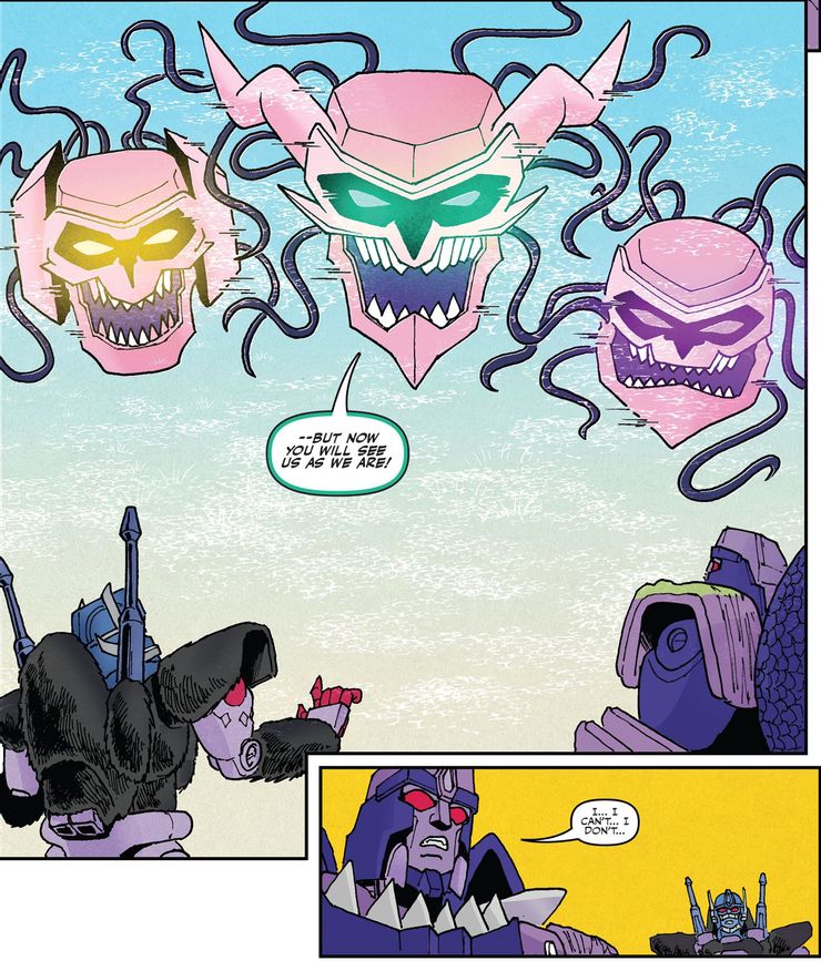 IDW Publishing acaba de reconfigurar Megatrón desde el Guerras de bestias programa de televisión en un cobarde por la forma en que reacciona ante la apariencia de otro mundo y el poder absoluto que muestran los misteriosos alienígenas Vok que recientemente declararon la guerra contra todos los Transformadores que se estrelló en su planeta.