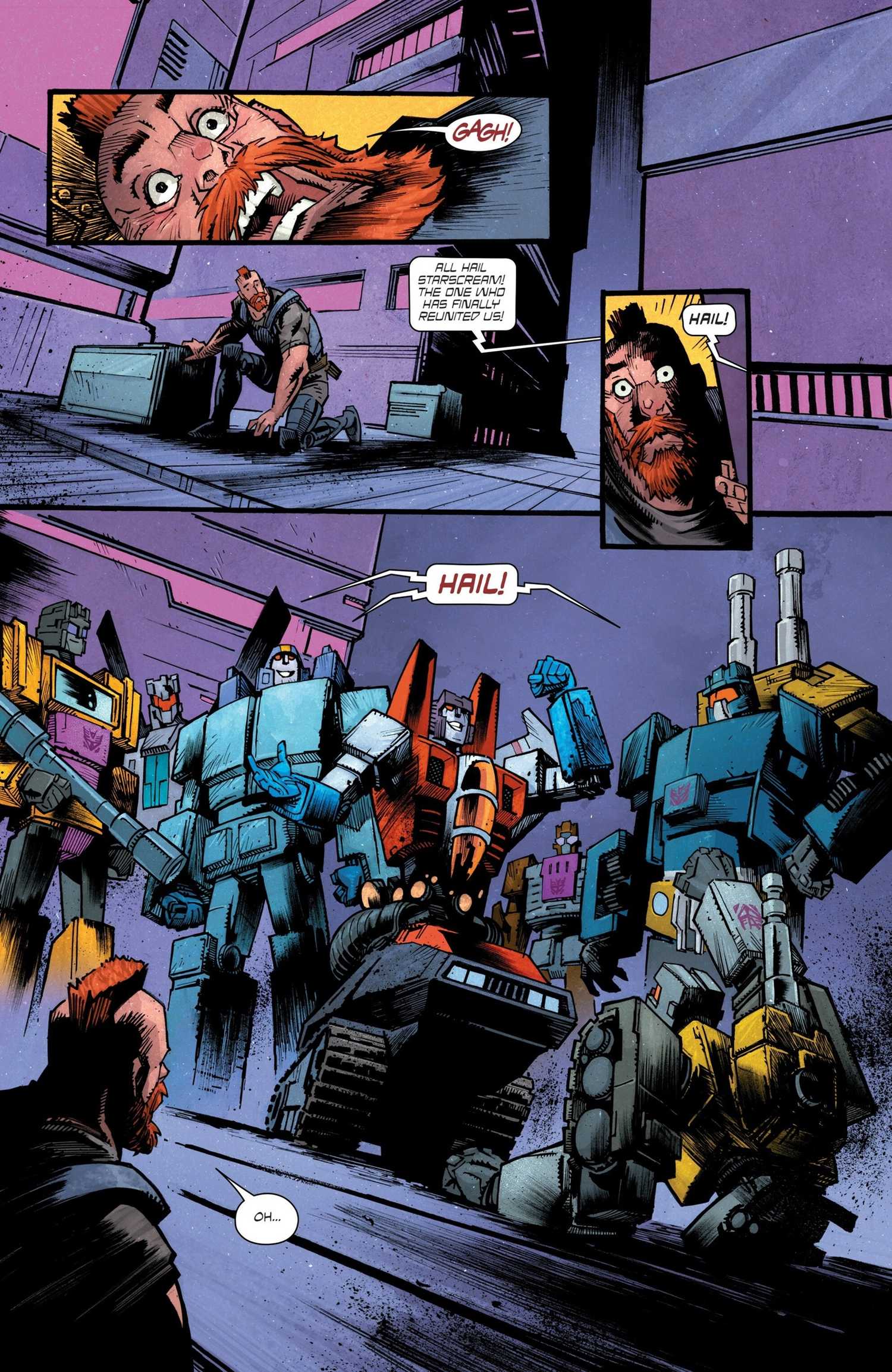 Starscream recibió una apariencia actualizada gracias a un equipo de mercenarios que trabajan para MARS Industries, quienes reparan el Decepticon gravemente dañado uniendo su torso a un tanque HISS. Starscream, que nunca deja pasar una oportunidad, manipula a los mercenarios para rescatar al triple cambiador Astrotrain, que busca venganza contra Megatron, y a los Combaticons, quienes se sienten menospreciados por Shockwave después de sus acciones en Transformadores‘segundo arco. Con seis nuevos aliados, Starscream tiene suficientes bots de su lado para formar su propia faccióny el ex Decepticon busca ajustar algunas viejas cuentas con su nueva brigada.