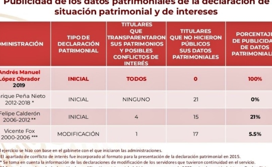 Señaló que en los tres últimos sexenios, no se había registrado que a inicios del sexenio, todos los funcionarios hubieran declarado su patrimonio en totalidad.