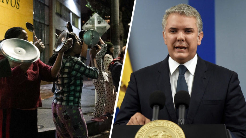 El mandatario tampoco hizo referencia alguna al sorpresivo cacerolazo que por varias horas retumbó la noche del jueves en los barrios de Bogotá y que contagió a los vecinos de otras ciudades de Colombia, una señal de la creciente insatisfacción con el gobierno.
