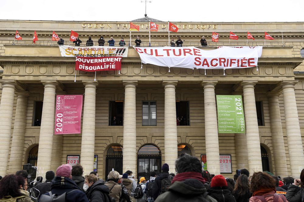 Los teatros, cines y museos permanecen cerrados en Francia desde que el presidente, Emmanuel Macron, ordenara un segundo confinamiento a finales de octubre. Ninguna de las fechas manejadas desde entonces para una progresiva reapertura —inicialmente el 15 de diciembre, luego el 20 de enero— ha sido cumplida y el sector cultural, una de las principales fuentes de orgullo de Francia, siente que el Gobierno ha decidido “sacrificar la cultura” por la pandemia, como reza una de las pancartas colocadas la semana pasada en la fachada del teatro Odéon.