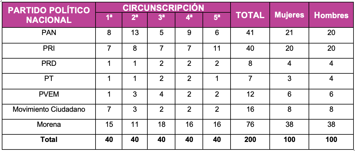 La consejera Claudia Zavala, presidenta de la Comisión, señaló que la distribución fue obtenida por consenso: “Con garantía de derechos, con interpretaciones, con principios, dimos seguridad jurídica y certeza para todas las personas que ocuparán las diputaciones”.