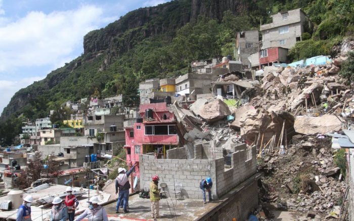 En los trabajos de rescate participan la Coordinación Nacional de Protección Civil, la Secretaría de Marina (Semar) y la Secretaría de la Defensa Nacional (Sedena) con brigadas caninas. El deslave, que aún no tiene una explicación oficial, ha provocado conmoción por ocurrir en una zona marginada que nació como asentamiento irregular.