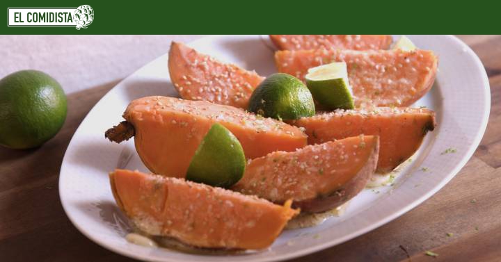 Untar los boniatos con la mantequilla de tahina. Terminar con sal en escamas, sésamo y unas rodajas de lima.