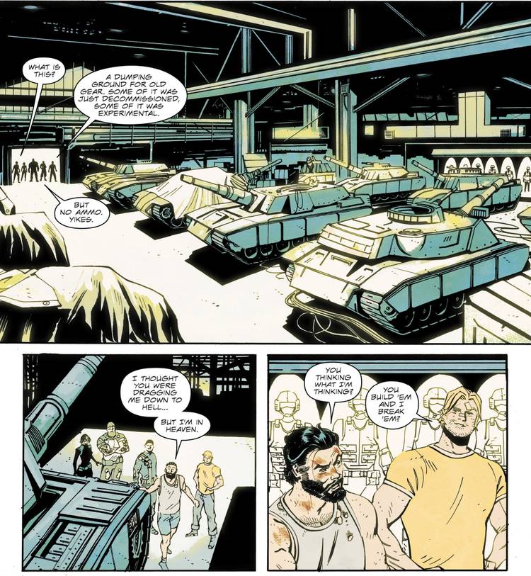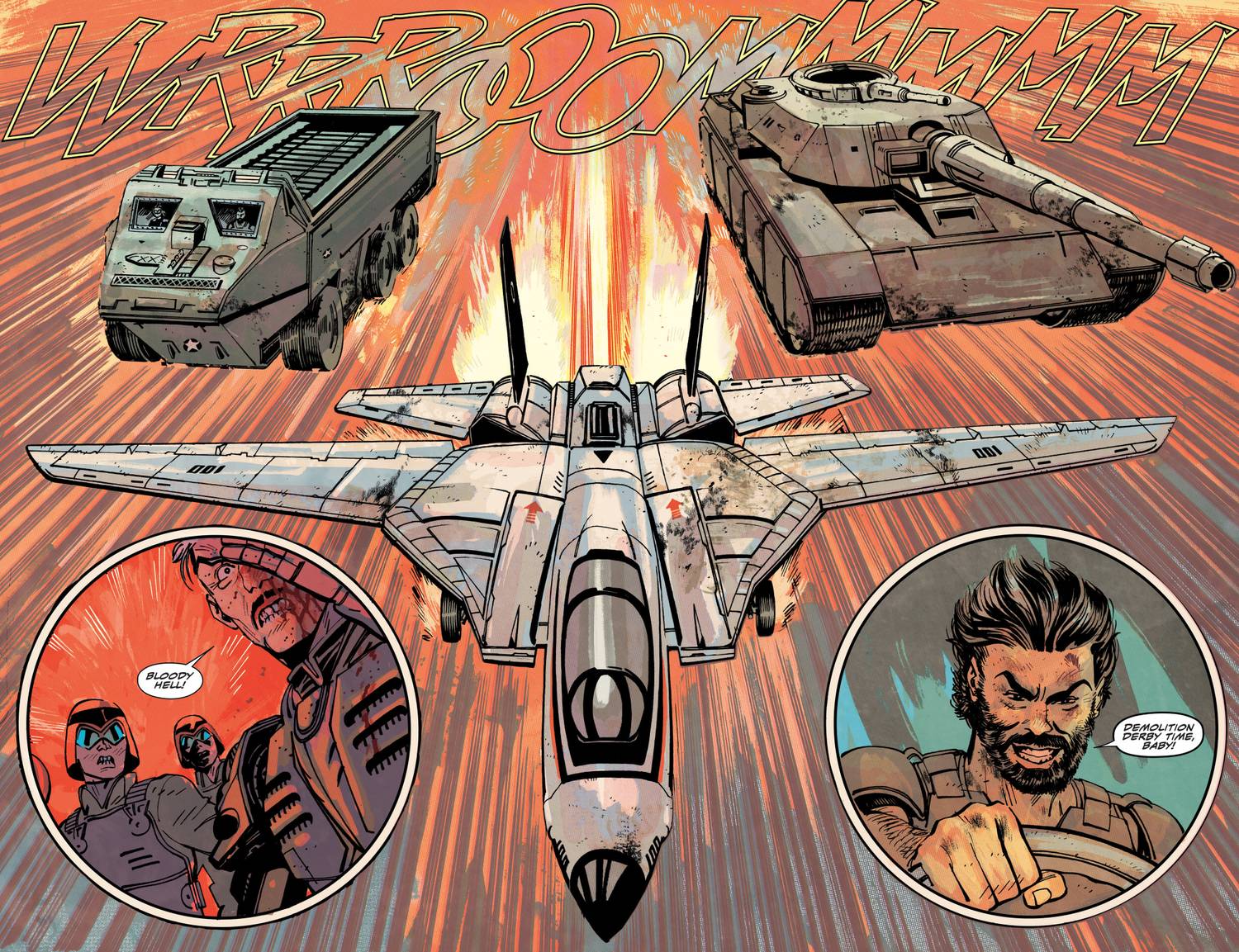 ¡Es hora del derbi de demolición, cariño!”, grita Clutch, mientras los héroes de la serie se ven obligados a utilizar los vehículos como plataformas de demolición debido a la falta de municiones. Pueden encontrar varios usos creativos con cada equipo, como el MOBAT golpeando a los soldados de MARS girando el cañón del tanque o el Skystriker derribando a las tropas con sus motores a reacción. Estas escenas recuerdan a un grupo de niños jugando con sus juguetes en el suelo de la sala, lo que demuestra que los creadores se lo están pasando genial haciendo este cómic. Dado que el Universo Energon proviene de dos queridas líneas de juguetes de los ochenta, ese es exactamente el tono que los fanáticos esperan de la línea de cómics de Skybound.