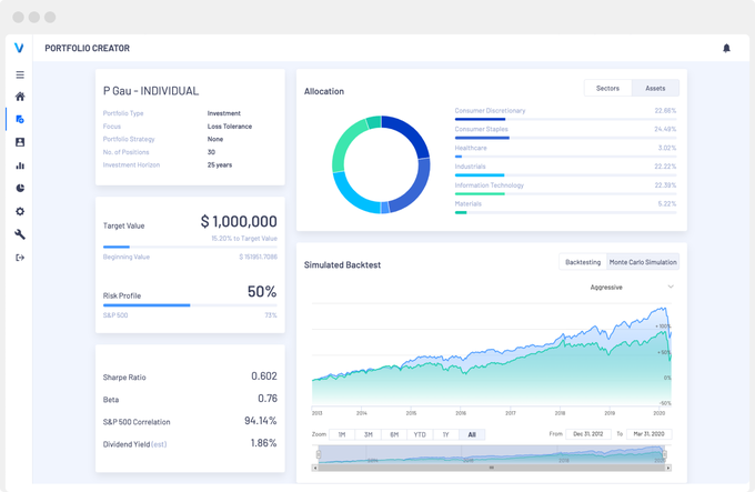 En cambio, Vise pretende ser una ventanilla única para todas las necesidades en el flujo de trabajo diario de un asesor de inversiones. Eso incluye determinar diferentes opciones de inversión en una interfaz limpia, personalizar esas opciones para clientes individuales e incluso ayudar a guiar a los asesores de inversión a través de los puntos de discusión sobre por qué ciertas decisiones de inversión tienen sentido en comparación con otras dado el contexto del cliente.
