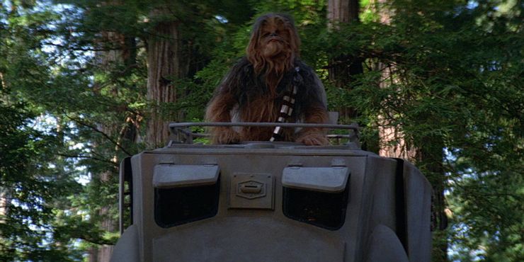 Redditor Skysamfreeman trae a colación una de estas escenas tontas, “El AT-ST deslizándose cómicamente en los registros en ROTJ. Nunca veo que se habla y está a la par con algunas de las peores cosas de las precuelas”. En cuanto a alcanzar la tontería de nivel de precuela, también hay un argumento para que Chewie opere el arma mecánica masiva de la muerte.