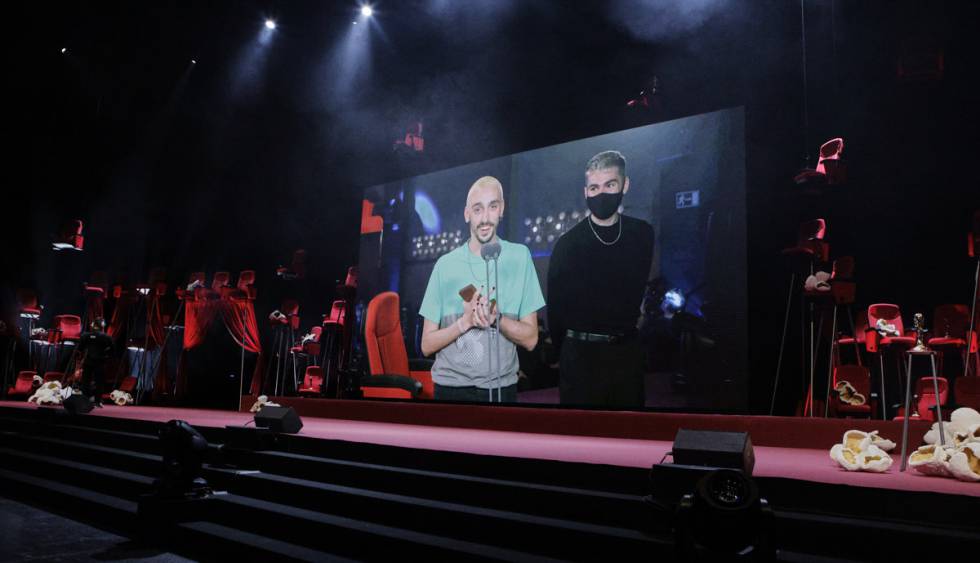 La gala va ser presencial amb notòries absències de premiats com Mario Casas, El Niño de Elche, Alberto San Juan o, més previsible, Ken Loach. El tribut a les sales centenàries va consistir a donar entrada a dos cinemes en dos moments de la cerimònia. Un paper subsidiari. Quan es va lliurar el premi del públic, es va fer des del cine de Calella del Maresme. Va guanyar Les dues nits d’ahir. No se li dona, però, una estatueta. S’han de conformar amb una placa. Té un tracte perifèric perquè no el trien els acadèmics? Que es fes des de Calella del Maresme semblava com si l’haguessin expulsat de la festa, a pesar de la bona companyia que són Gemma Nierga i Jaume Figueras. L’altra sala centenària, de Sitges, es va fer servir per dedicar un record als professionals morts el darrer any. Un moment on s’insisteix a combinar-lo amb una actuació musical que, de vegades, trepitja injustament el protagonisme que hauria de tenir aquest record.