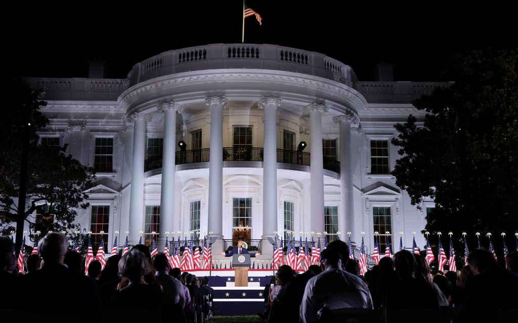 El discurso de Trump tuvo lugar en el jardín sur de la Casa Blanca, un lugar controvertido para un evento partidista. Sus comentarios coronan una convención de cuatro días que lo ha presentado como un líder que puede reactivar la economía y restaurar el orden.