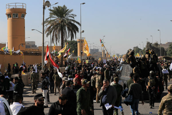 Este 31 de diciembre decenas de manifestantes irrumpieron en la sede diplomática de Estados Unidos en Bagdad e incendiaron la valla exterior de la embajada en respuesta a los ataques aéreos estadounidenses donde 24 miembros de la milicia iraquí, Kataib Hezbollah, murieron el pasado fin de semana.