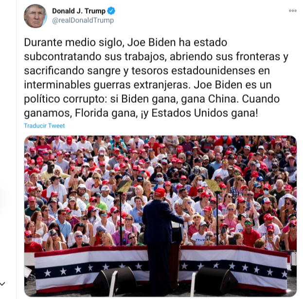 El presidente de EU también aseguró que, de ganar la presidencia, Joe Biden convertiría a Estados Unidos en ‘la Cuba comunista o la Venezuela socialista’.