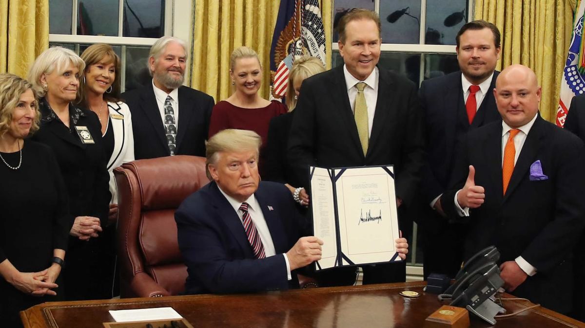 Varios activistas a favor de los derechos de los animales rodearon el lunes al presidente Trump en el Despacho Oval cuando el mandatario firmó la legislación.