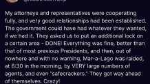 En ese mensaje en su red social, Truth Social, apuntó que sus abogados y representantes estaban cooperando “totalmente” y que se había establecido una relación “muy buena”.