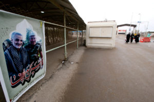El comandante de la Guardia Revolucionaria Iraní, Qassem Soleimani (izq), en un cartel colgado en el Cruce Fronterizo de Shalamcha, Irak (Foto: REUTERS/Essam al-Sudani)