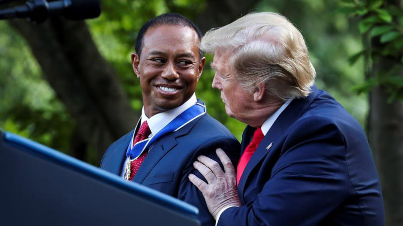 El mandatario nunca ha ocultado su admiración por Woods, con quien juega al golf con cierta asiduidad, generalmente en alguno de clubes que forman parte del conglomerado de Trump.