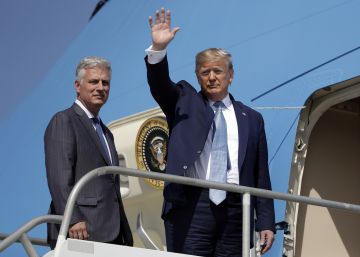 El presidente de los EE UU, Donald Trump (a la derecha), junto a Robert C. O’Brein, nuevo consejero de Seguridad Nacional, este miércoles en Los Ángeles. Evan Vucci AP