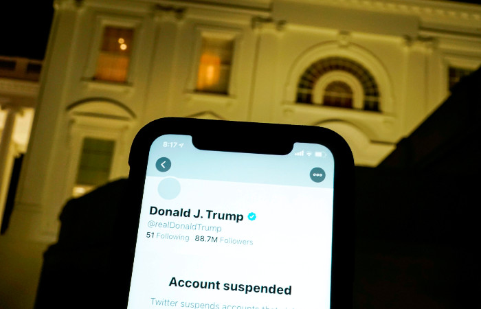 Twitter y otras plataformas de redes sociales prohibieron a Trump el acceso a sus servicios después de que una turba de sus partidarios atacara el Capitolio de Estados Unidos en unos disturbios con víctimas fatales el 6 de enero.