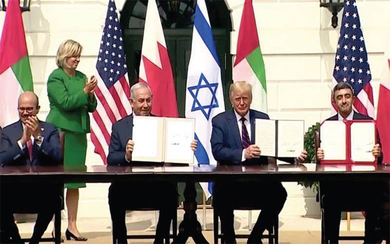 Cientos de personas se reunieron en el jardín sur bañado por el sol para presenciar la firma de acuerdos entre Israel y los Emiratos Árabes Unidos y Bahrein. Los acuerdos bilaterales formalizan la normalización de las relaciones ya descongeladas del estado judío con las dos naciones árabes en línea con su oposición común a Irán y su agresión en la región.