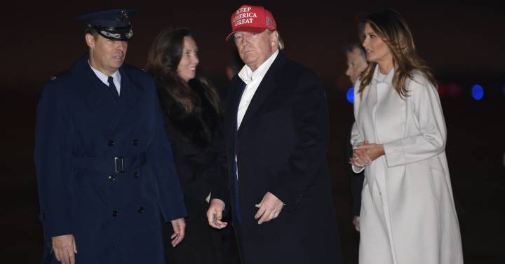 Donald Trump, junto a su esposa, Melania, este domingo a su llegada a la base de Saint Andrews. En vídeo, las claves del ‘impeachment’ a Trump y de la trama ucrania. FOTO: SUSAN WALSH (AP) | VÍDEO: EPV