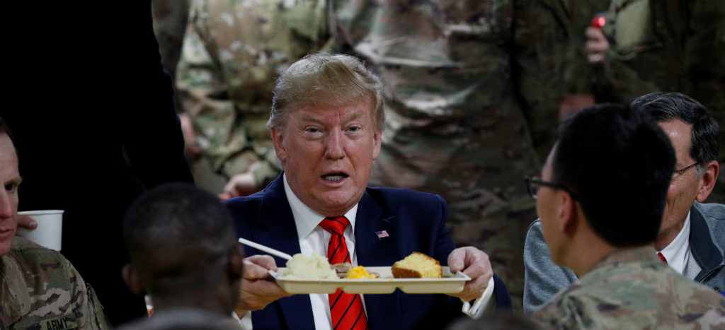 En una muestra de respaldo a las tropas estadounidenses, el presidente Donald Trump pasa el Día de Acción de Gracias en la base aérea militar de Bagram, al noreste de Afganistán.