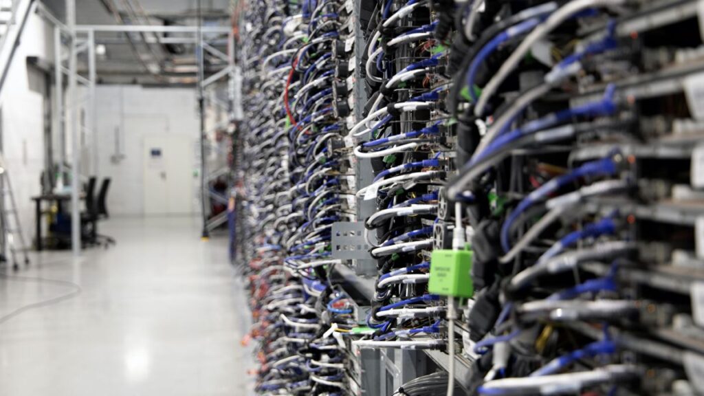 Pasillo de un centro de datos francés con más de 120.000 servidores que está previsto que se amplíe hasta los 190.000 en una imagen del pasado febrero.