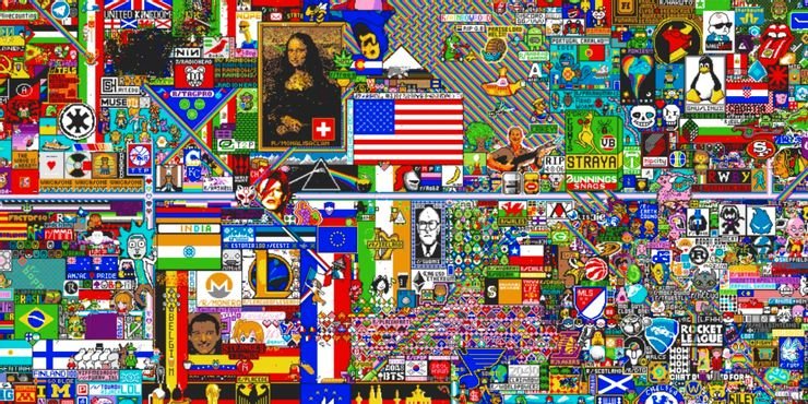 En realidad, hay una muy buena razón detrás del ícono pixelado de la aplicación Reddit. En resumen, es la forma en que Reddit promociona el subreddit r/Place que se trajo de vuelta para April Fools este año. r/Place debutó el 1 de abril de 2017 como un proyecto de arte digital. Los usuarios de Reddit podían visitar el subreddit, rellenar un cuadrado pixelado en un gran lienzo virtual y trabajar juntos para crear lo que quisieran. ¿La captura? Los usuarios solo podían completar un cuadrado cada cinco minutos. Si bien parece que sería una receta para el desastre, más de 1 millón de usuarios aleatorios de Reddit colocaron 16 millones de cuadrados de colores para crear la imagen que ves arriba. es una mezcolanza de Liga de cohetes logotipos, un dibujo digital de la Mona Lisa, varias banderas de países y un retrato de Steve Irwin sosteniendo un cocodrilo bebé.
