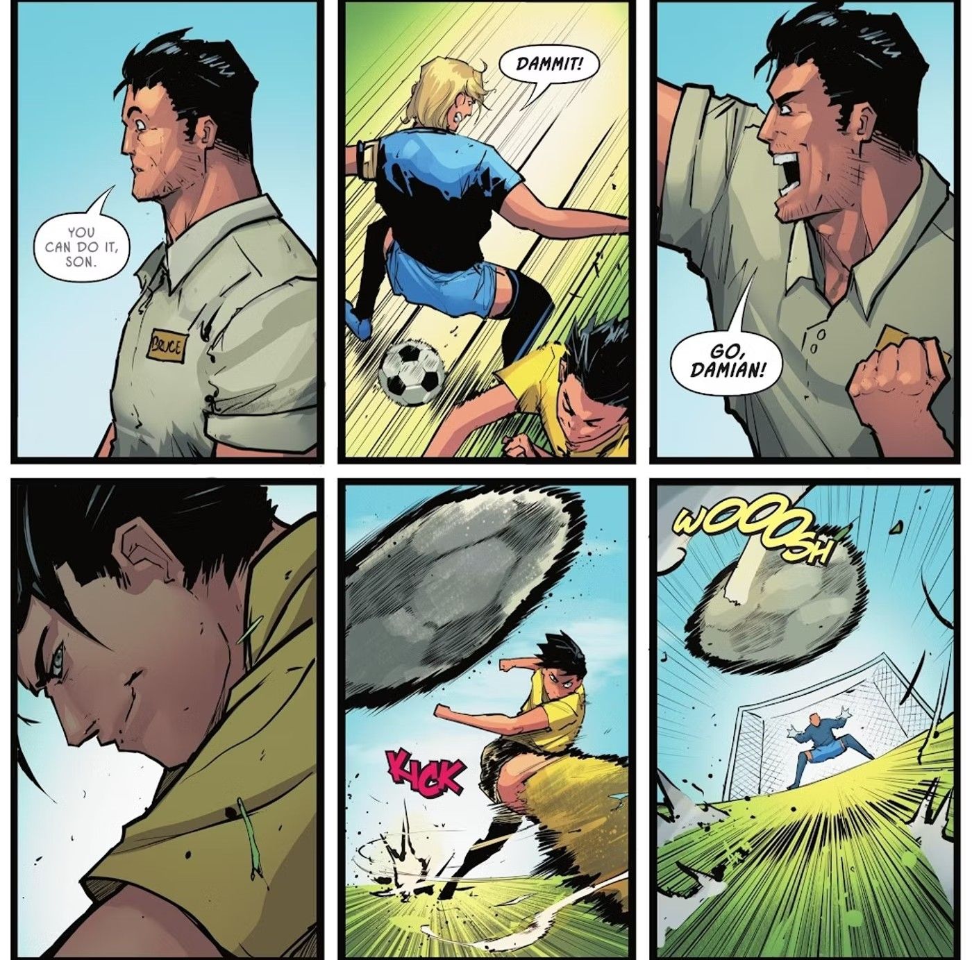 - Batman finalmente está demostrando ser un buen padre al apoyar la escolarización y las pruebas de fútbol de Damian.